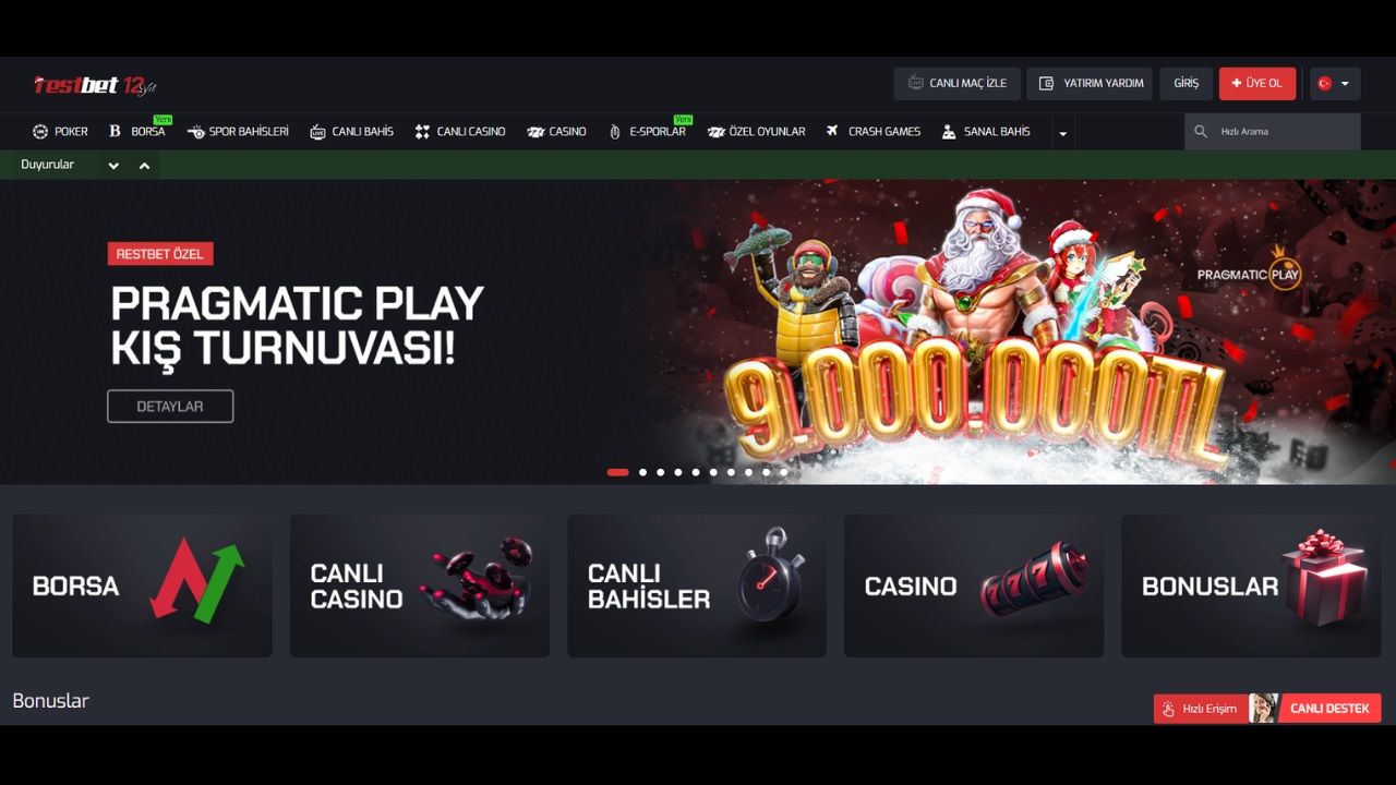 Peki, Restbet nedir? ne işe yarar? Restbet, üyelerine geniş bahis bölümleriyle hizmet sağlar. En iyi canlı bahis, casino, slot ve poker oyunlarından oluşur. Yüksek oranlar ve çok kolay kullanım özellikleri ile hizmetlerini yürütür. Spor bahisleri dışında casino ve canlı oyun seçenekleri de bulunmaktadır.